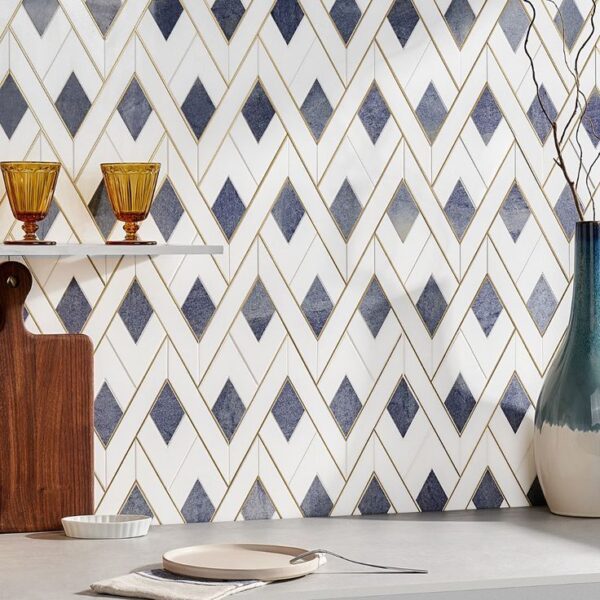 Geometric Mosiac Tiles A geometric mosaic tile backsplash features small, intricately shaped tiles (think hexagons, triangles, squares or diamonds) with boundless design possibilities. They can be arranged in countless patterns, from bold chevrons to what I call carpet pattern with a boarder design and field design. The tiles come in every imaginable color, from vibrant jewel tones to soft neutrals, but I especially love the black and white patterns with a splash of color. Textures range from glossy and polished to matte, textured, stone, or even metallic finishes, suiting diverse kitchen styles. With options for metallic accents and any grout color, these backsplashes offer endless customization to match any aesthetic. |