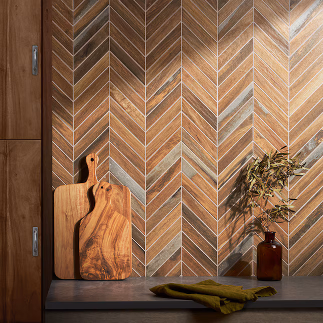 Wood Look Tiles A wood-look tile backsplash features ceramic or porcelain tiles mimicking natural wood grain, bringing a warm, organic aesthetic to your kitchen wall. Available in rich tones like oak, walnut, or weathered driftwood, with textures ranging from smooth to rustic, these tiles offer a cozy, natural look. This durable, low-maintenance design blends earthy charm with modern practicality, enhancing any kitchen with a welcoming, nature-inspired vibe. |