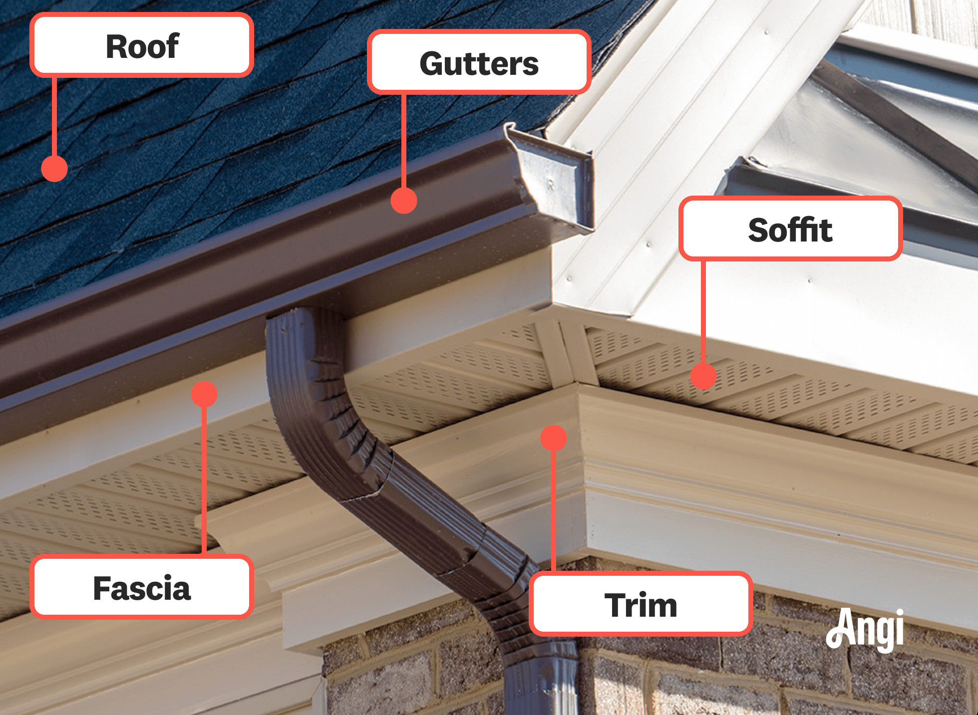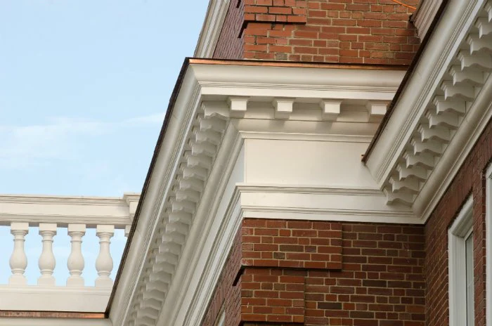 Exterior trim at the roofline or above windows/doors