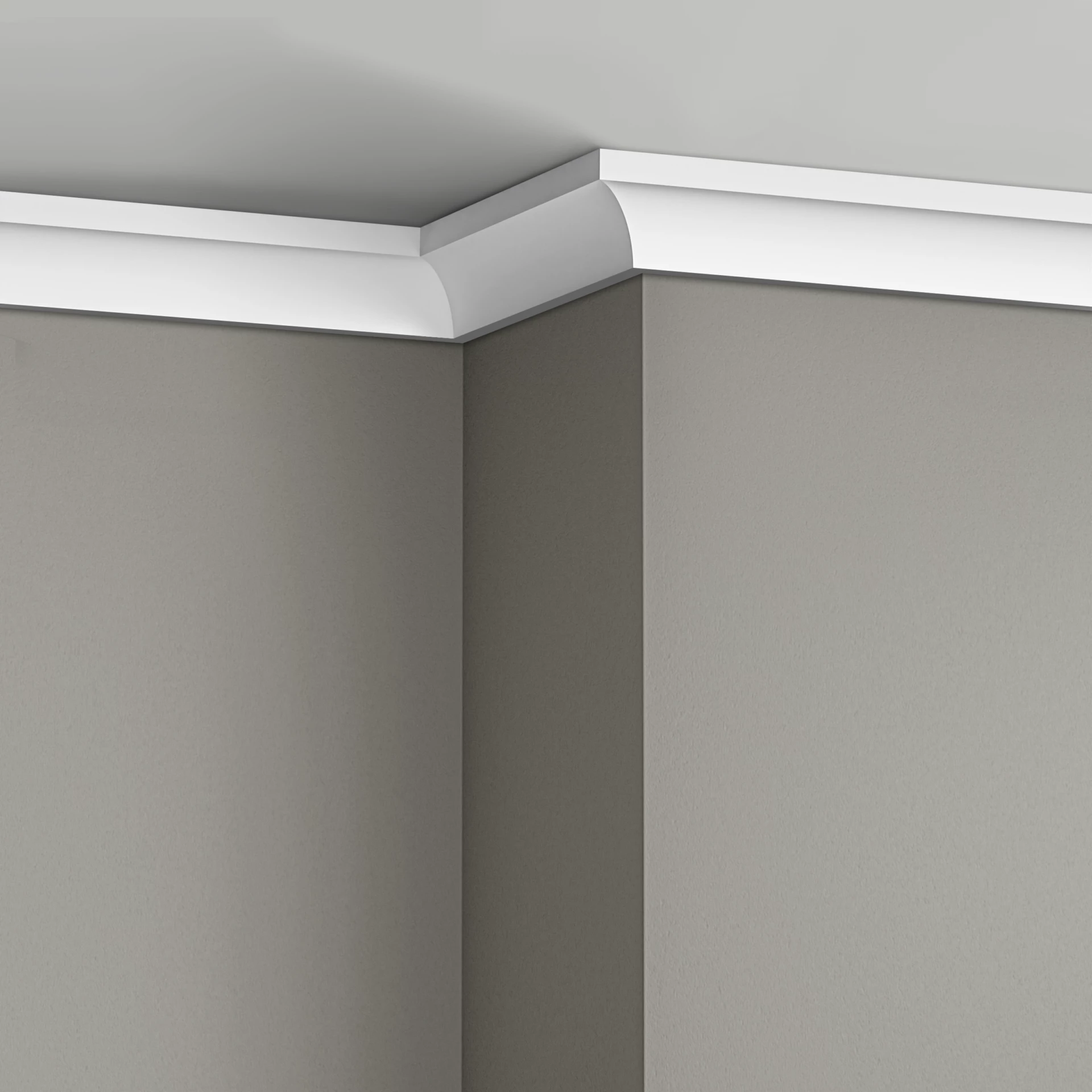Concave trim often used at wall-ceiling transitions or inside corners